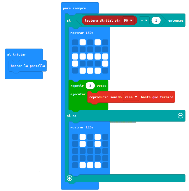 El sensor de obstáculos es un componente muy útil para cualquier construcción. Tiene muchas posibilidades, se puede utilizar en un vehículo para sortear un obstáculo o para crear una mascota con nuestro micro:bit. En esta práctica vas a hacer que al detectar una distancia inferior a cierto valor comprendido entre 2 y 40 cm (es lo que detecta este sensor) aparezca una imagen en la pantalla de la micro:bit y reproduzca un sonido.