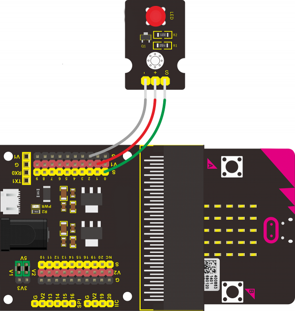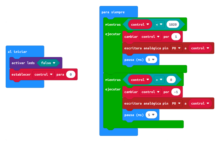 Para programar este sensor, puedes realizar el siguiente código en la plataforma MakeCode. Una vez completado, descárgalo en micro:bit, insértala en la placa de expansión y comprueba que funciona correctamente.