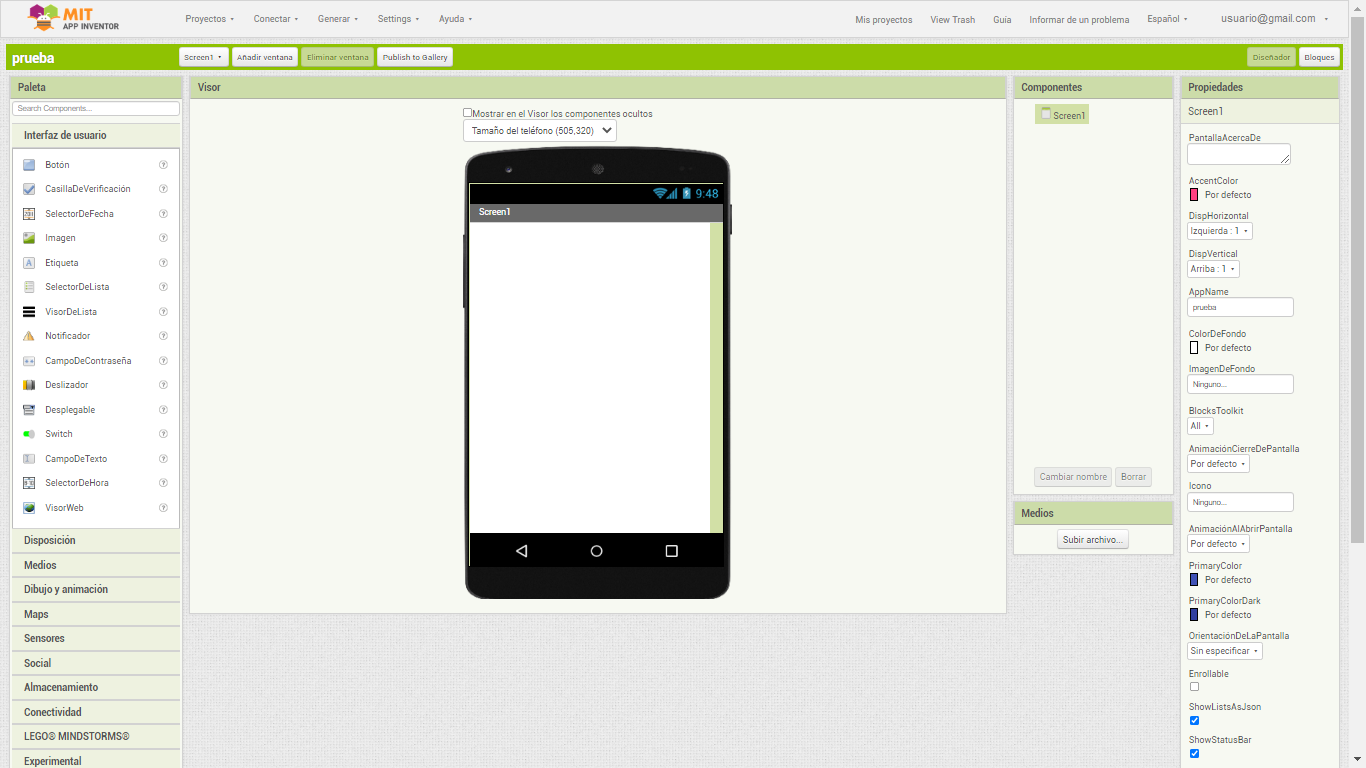Una vez que está claro cómo quieres que sea la app, hay que trasladar tu boceto previo a App Inventor para empezar a convertirlo en una realidad.