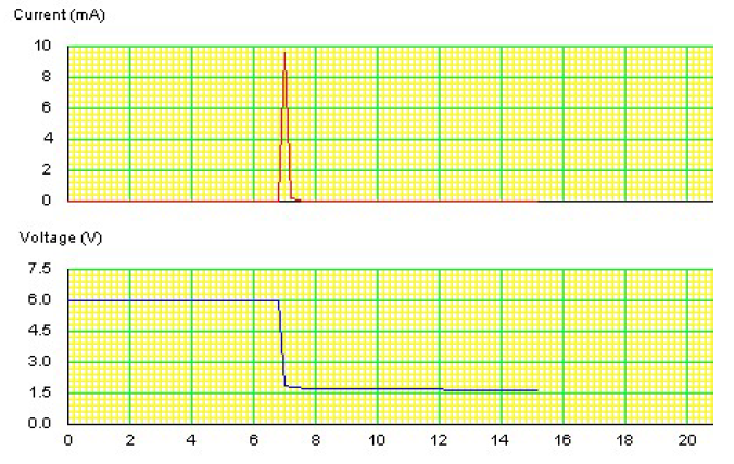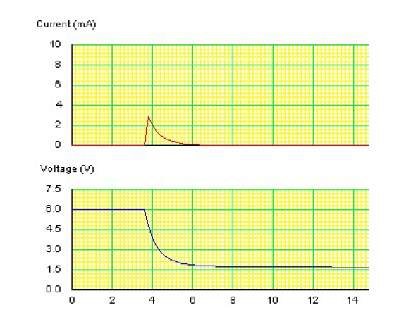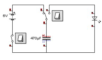 Si conectamos el condensador cargado a una lámpara, éste se descargará a través de la bombilla hasta que se agote la carga del condensador. La corriente desaparece y se apaga la lámpara.