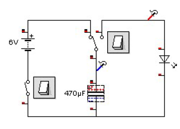 medir la tensión en el condensador y otra (ROJA), para medir la corriente que pasa por el indicador LED.