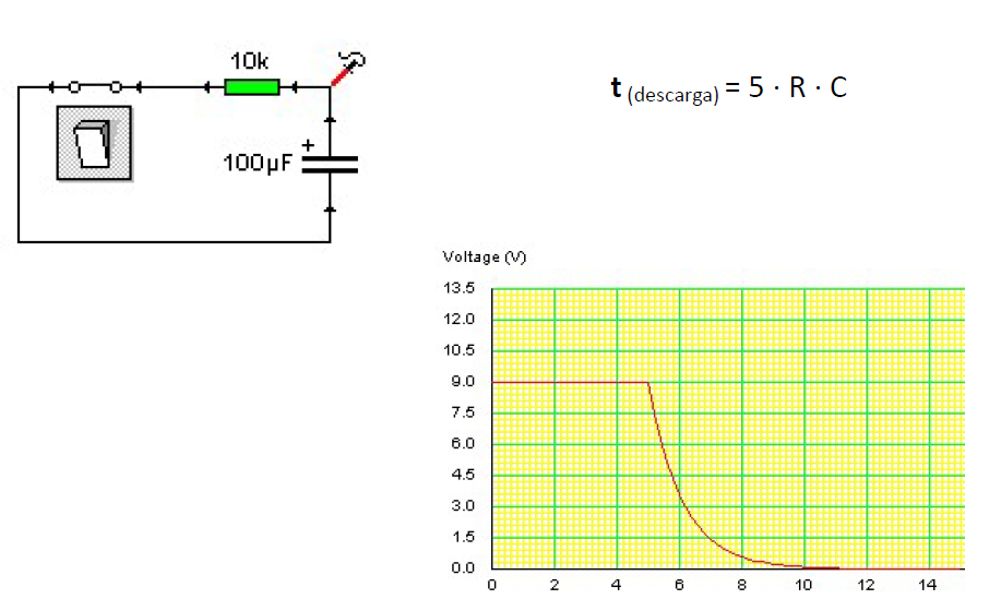 Un condensador jamás alcanzará su carga total, sin embargo, se supondrá que se completa la carga una vez transcurridas cinco constantes de tiempo.