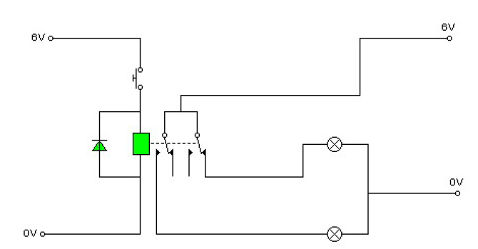 Hay que distinguir dos circuitos independientes dentro de un relé. Un circuito de alimentación de la bobina del relé y otro circuito que alimenta a sus contactos. Estos circuitos pueden ser alimentados a distinta tensión.