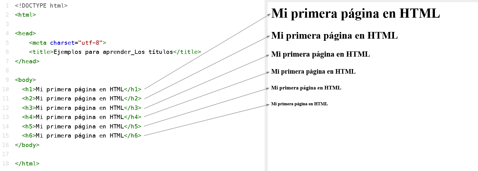 HTML cuenta con unas etiquetas que permiten ajustar el tamaño de un texto dentro de la página web. Estas etiquetas definen los titulos.