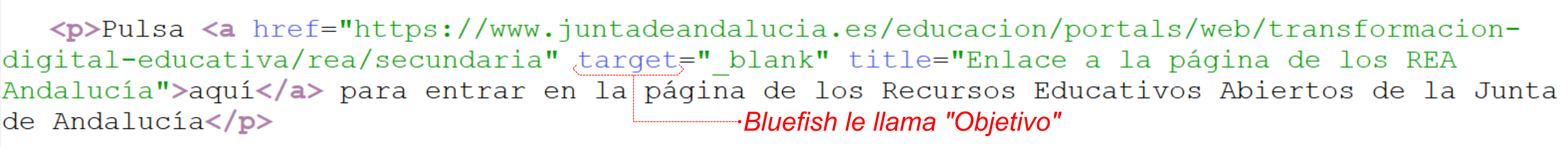 Como hemos visto anteriormente, la opción "Target" en Bluefish se conoce como "Objetivo".