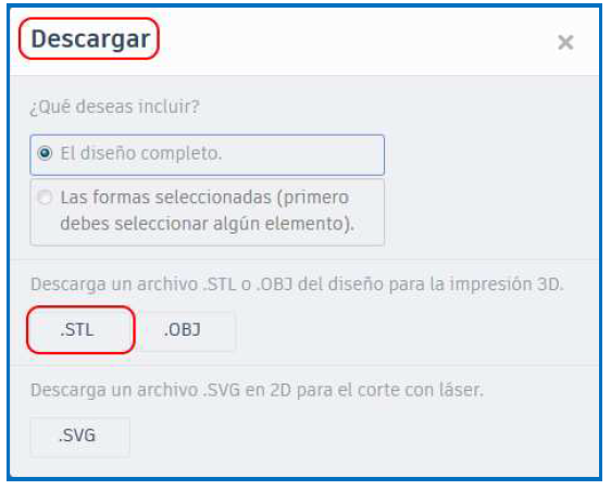 El proceso para generar un archivo imprimible a partir de Tinkercad es muy sencillo: